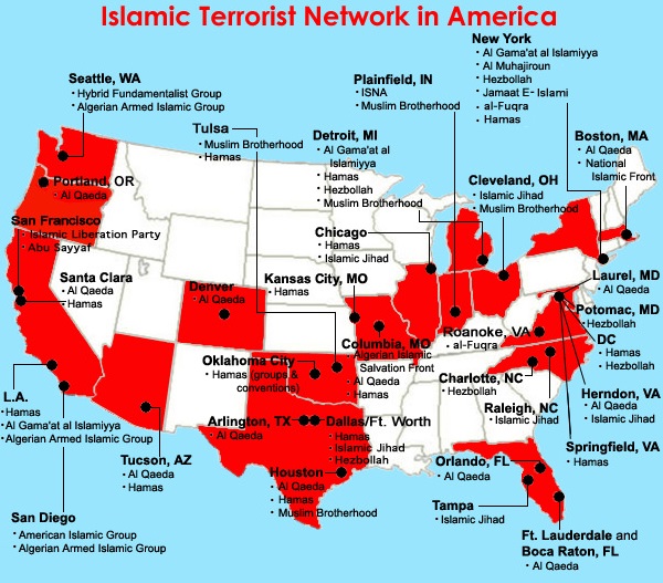As a result, radical Islamic terror cells have a pervasive presence in New York, Boston, Seattle, San Francisco, Orlando, Tucson and many other cities (see map below): (see sources and more maps at Clarionproject.org/extremist-organization/ )